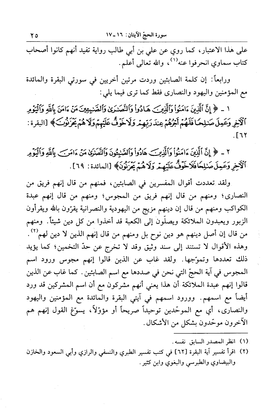 (2) اقرأ تفسير آية البقرة [62] في كتب تفسير الطبري والنسفي والرازي وأبي السعود والخازن والبيضاوي والطبرسي والبغوي وابن كثير.