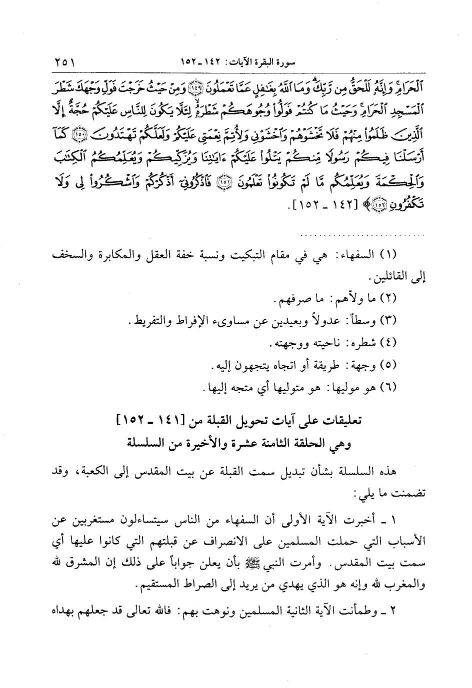 تعليقات على آيات تحويل القبلة من [141- 152] وهي الحلقة الثامنة عشرة والأخيرة من السلسلة