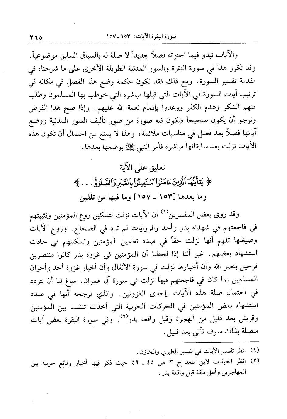 تعليق على الآية يا أَيُّهَا الَّذِينَ آمَنُوا اسْتَعِينُوا بِالصَّبْرِ وَالصَّلاةِ ... وما بعدها [153- 157] وما فيها من تلقين