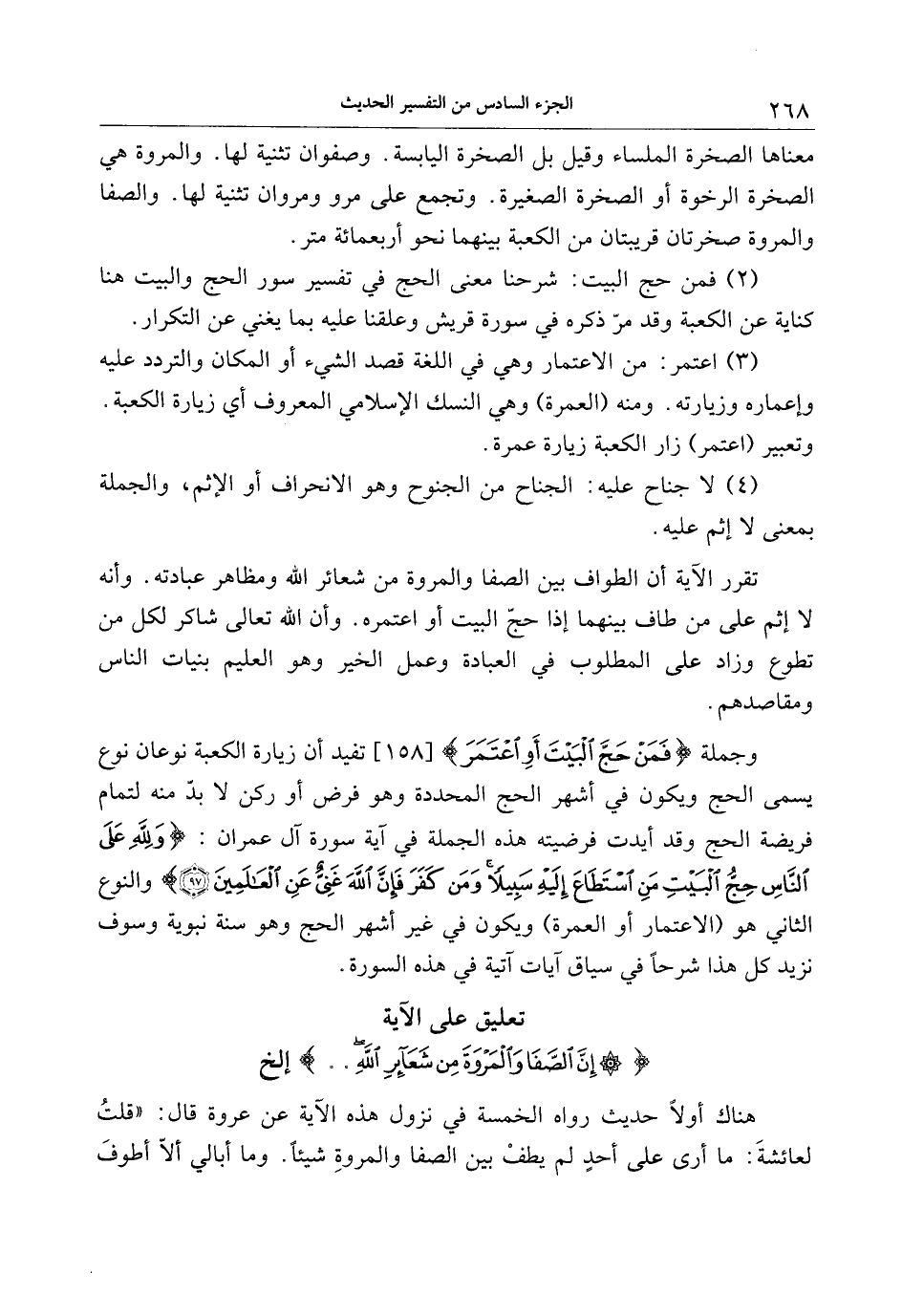 تعليق على الآية إِنَّ الصَّفا وَالْمَرْوَةَ مِنْ شَعائِرِ اللَّهِ ... إلخ