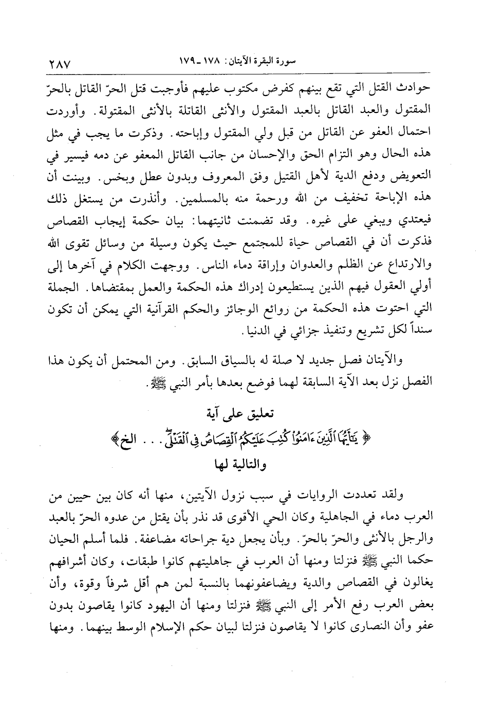 تعليق على آية يا أَيُّهَا الَّذِينَ آمَنُوا كُتِبَ عَلَيْكُمُ الْقِصاصُ فِي الْقَتْلى ... إلخ والتالية لها