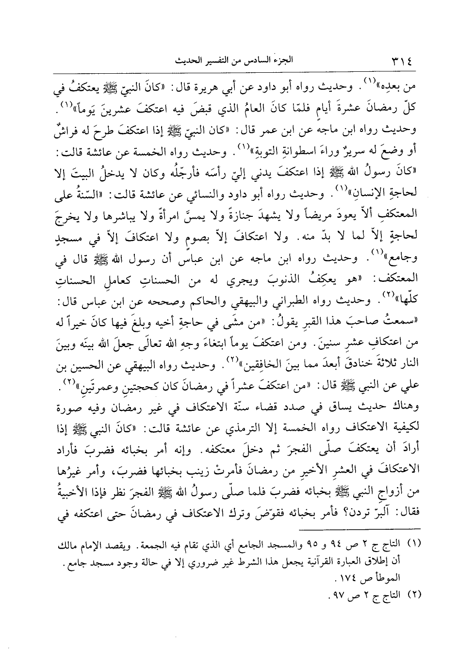 (2) التاج ج 2 ص 94 و 95 والمسجد الجامع أي الذي تقام فيه الجمعة. ويقصد الإمام مالك أن إطلاق العبارة القرآنية يجعل هذا الشرط غير ضروري إلا في حالة وجود مسجد جامع.