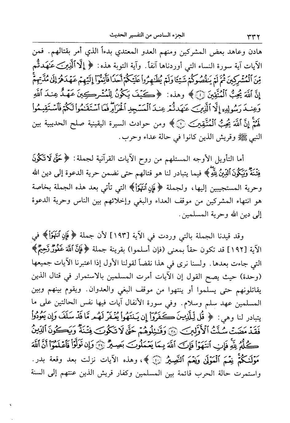 أما التأويل الأوجه المستلهم من روح الآيات القرآنية لجملة: حَتَّى لا تَكُونَ فِتْنَةٌ وَيَكُونَ الدِّينُ لِلَّهِ فيما يتبادر لنا هو قتالهم حتى نضمن حرية الدعوة إلى دين الله وحرية المستجيبين إليها، ولجملة فَإِنِ انْتَهَوْا التي تأتي بعد هذه الجملة بخاصة هو انتهاء المشركين من موقف العداء والبغي وإخلائهم بين الناس وحرية الدعوة إلى دين الله وحرية المسلمين.