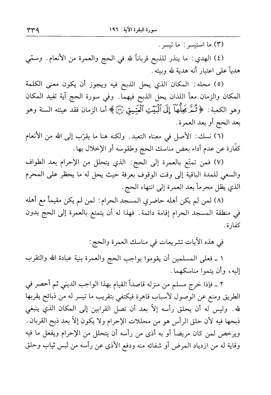 في هذه الآيات تشريعات في مناسك العمرة والحج: