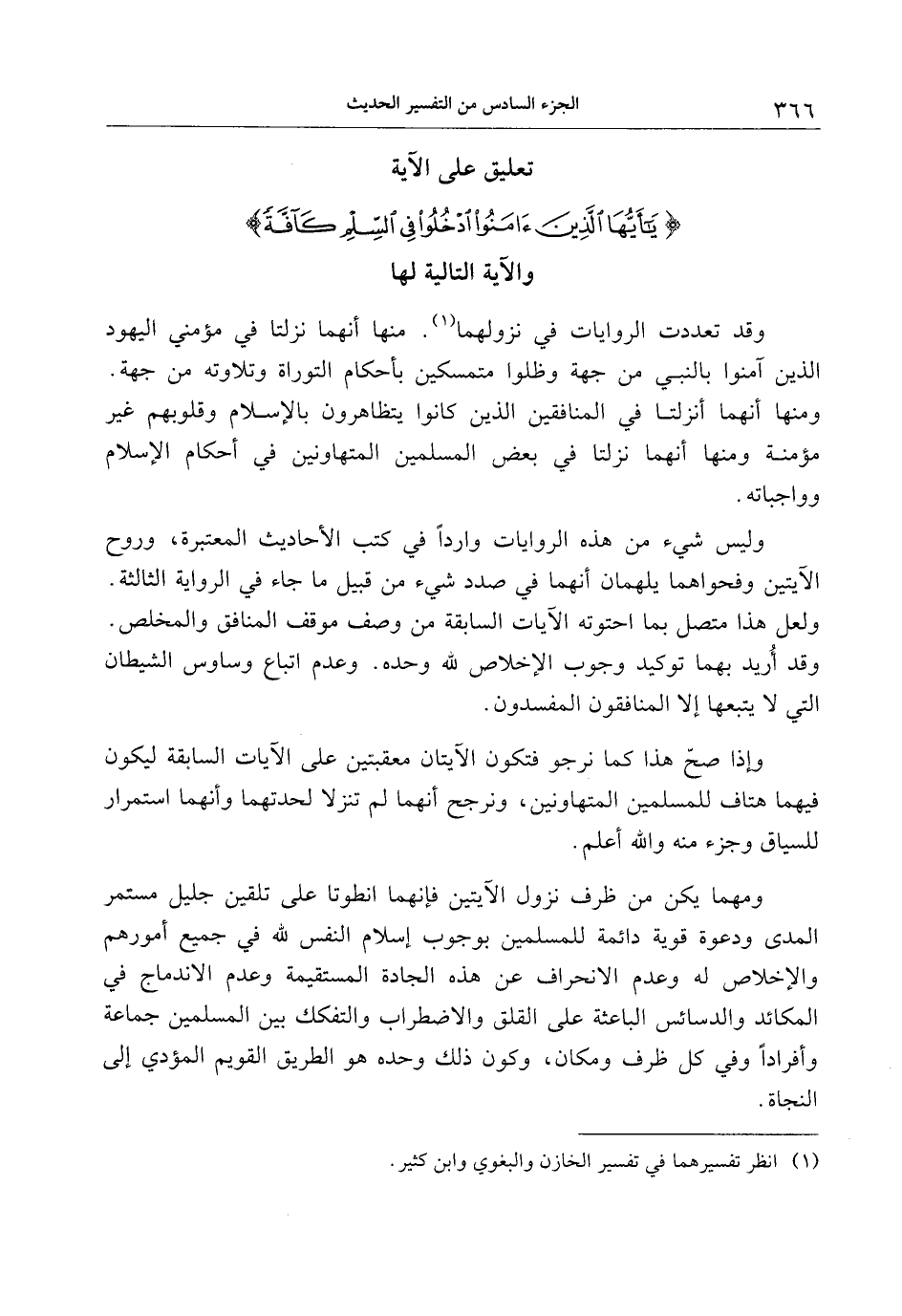 تعليق على الآية يا أَيُّهَا الَّذِينَ آمَنُوا ادْخُلُوا فِي السِّلْمِ كَافَّةً والآية التالية لها