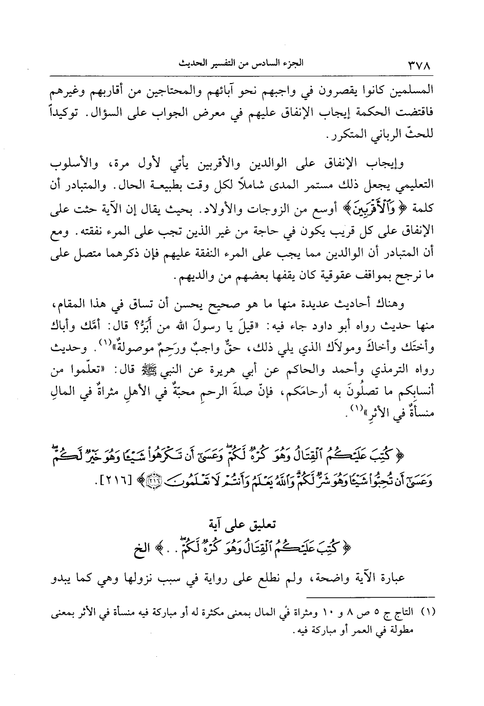 . تعليق على آية كُتِبَ عَلَيْكُمُ الْقِتالُ وَهُوَ كُرْهٌ لَكُمْ ... إلخ