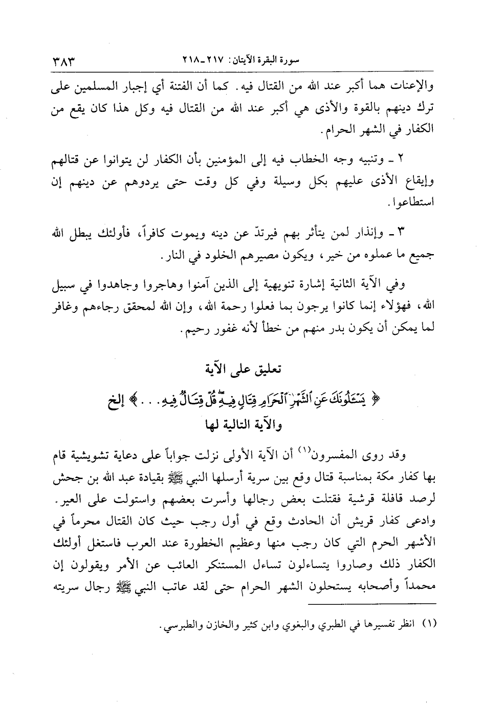 تعليق على الآية يَسْئَلُونَكَ عَنِ الشَّهْرِ الْحَرامِ قِتالٍ فِيهِ قُلْ قِتالٌ فِيهِ ... إلخ والآية التالية لها