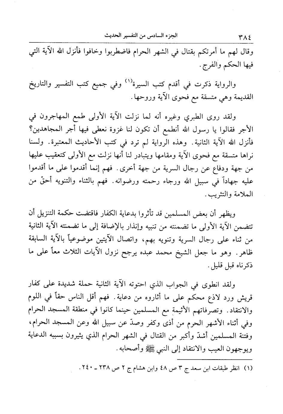 فأنزل الله الآية الثانية. وهذه الرواية لم ترد في كتب الأحاديث المعتبرة. ولسنا نراها متسقة مع فحوى الآية ومقامها ويتبادر لنا أنها نزلت مع الأولى كتعقيب عليها من جهة ودفاع عن رجال السرية من جهة أخرى. فهم إنما أقدموا على ما أقدموا عليه جهادا في سبيل الله ورجاء رحمته ورضوانه. فهم بالثناء والتنويه أحقّ من الملامة والتثريب.