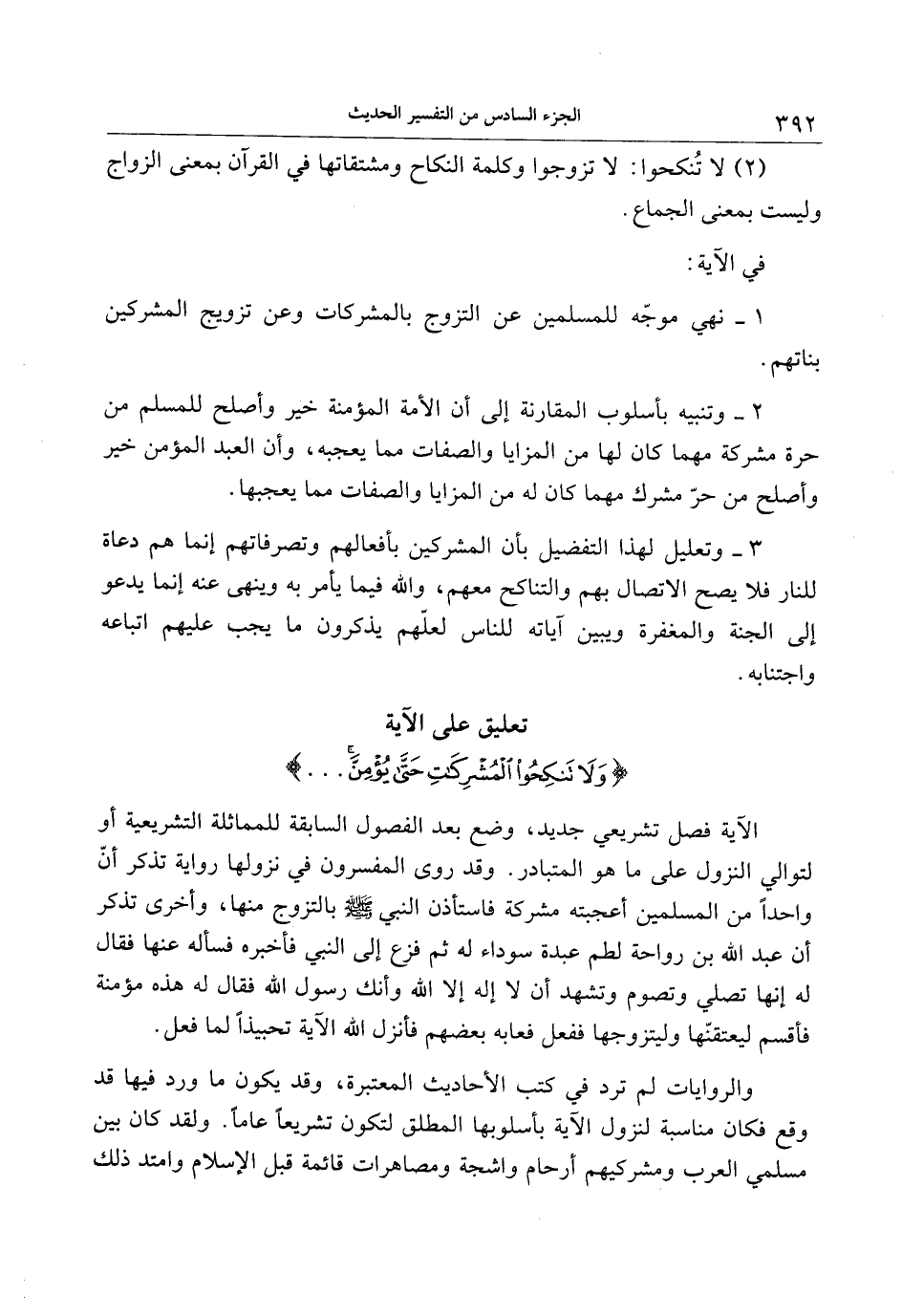 تعليق على الآية وَلا تَنْكِحُوا الْمُشْرِكاتِ حَتَّى يُؤْمِنَّ ...