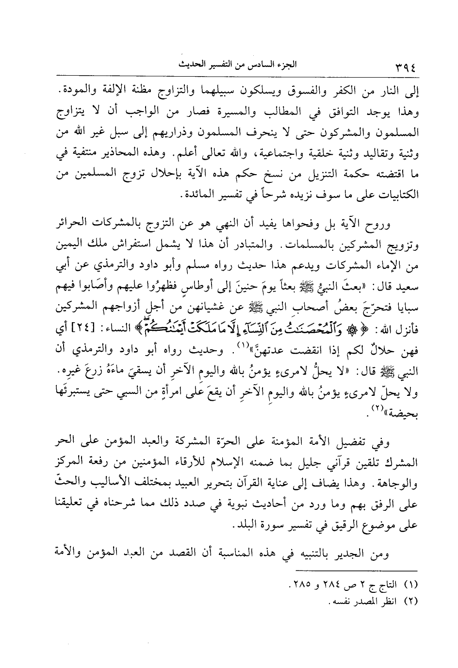 وفي تفضيل الأمة المؤمنة على الحرّة المشركة والعبد المؤمن على الحر المشرك تلقين قرآني جليل بما ضمنه الإسلام للأرقاء المؤمنين من رفعة المركز والوجاهة. وهذا يضاف إلى عناية القرآن بتحرير العبيد بمختلف الأساليب والحثّ على الرفق بهم وما ورد من أحاديث نبوية في صدد ذلك مما شرحناه في تعليقنا على موضوع الرقيق في تفسير سورة البلد.
