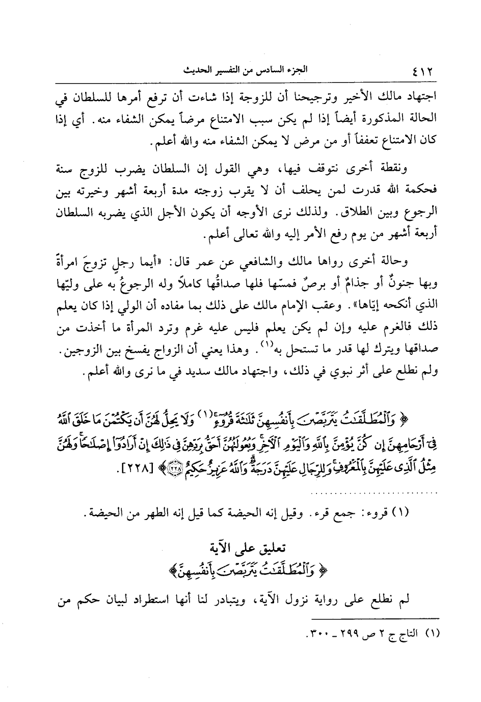 تعليق على الآية وَالْمُطَلَّقاتُ يَتَرَبَّصْنَ بِأَنْفُسِهِنَ