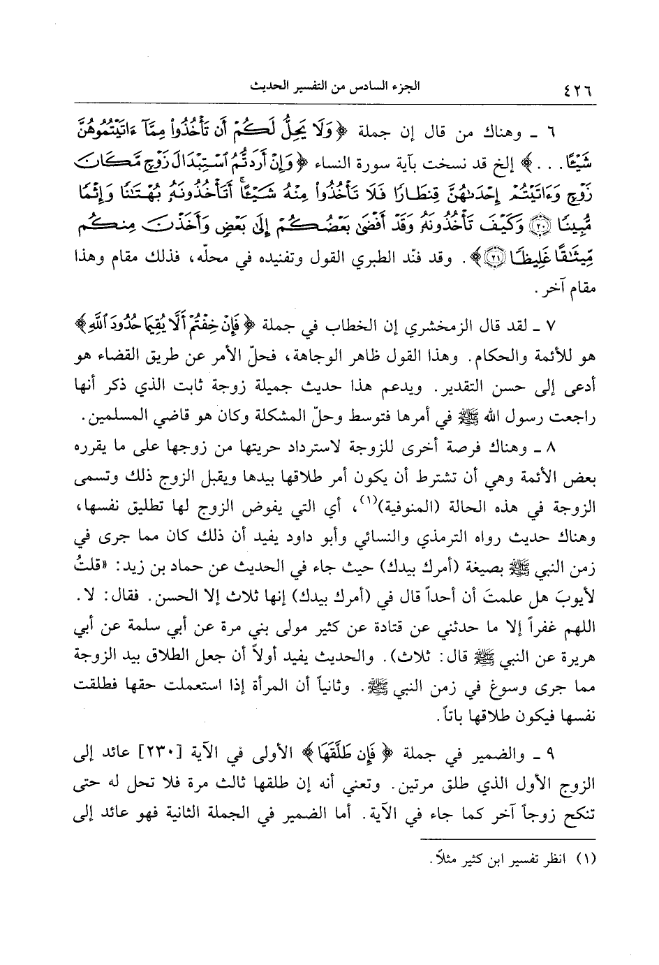 6- وهناك من قال إن جملة وَلا يَحِلُّ لَكُمْ أَنْ تَأْخُذُوا مِمَّا آتَيْتُمُوهُنَّ شَيْئاً ... إلخ قد نسخت بآية سورة النساء وَإِنْ أَرَدْتُمُ اسْتِبْدالَ زَوْجٍ مَكانَ زَوْجٍ وَآتَيْتُمْ إِحْداهُنَّ قِنْطاراً فَلا تَأْخُذُوا مِنْهُ شَيْئاً أَتَأْخُذُونَهُ بُهْتاناً وَإِثْماً مُبِيناً (20) وَكَيْفَ تَأْخُذُونَهُ وَقَدْ أَفْضى بَعْضُكُمْ إِلى بَعْضٍ وَأَخَذْنَ مِنْكُمْ مِيثاقاً غَلِيظاً (21) . وقد فنّد الطبري القول وتفنيده في محلّه، فذلك مقام وهذا مقام آخر.