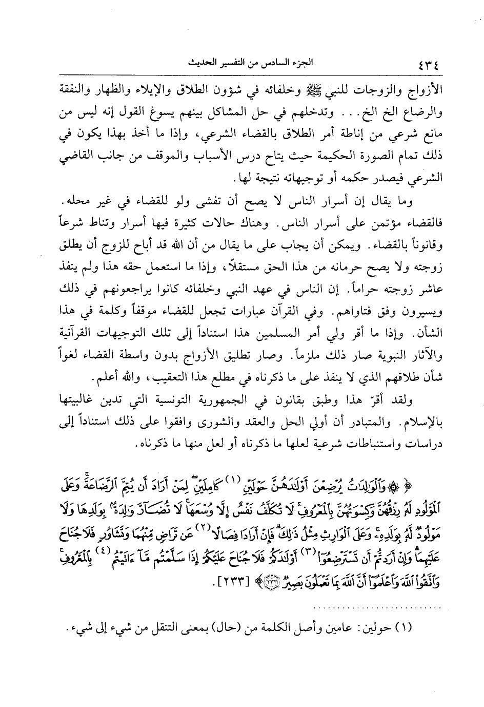 وَالْوالِداتُ يُرْضِعْنَ أَوْلادَهُنَّ حَوْلَيْنِ كامِلَيْنِ لِمَنْ أَرادَ أَنْ يُتِمَّ الرَّضاعَةَ وَعَلَى الْمَوْلُودِ لَهُ رِزْقُهُنَّ وَكِسْوَتُهُنَّ بِالْمَعْرُوفِ لا تُكَلَّفُ نَفْسٌ إِلاَّ وُسْعَها لا تُضَارَّ والِدَةٌ بِوَلَدِها وَلا مَوْلُودٌ لَهُ بِوَلَدِهِ وَعَلَى الْوارِثِ مِثْلُ ذلِكَ فَإِنْ أَرادا فِصالاً عَنْ تَراضٍ مِنْهُما وَتَشاوُرٍ فَلا جُناحَ عَلَيْهِما وَإِنْ أَرَدْتُمْ أَنْ تَسْتَرْضِعُوا أَوْلادَكُمْ فَلا جُناحَ عَلَيْكُمْ إِذا سَلَّمْتُمْ ما آتَيْتُمْ بِالْمَعْرُوفِ وَاتَّقُوا اللَّهَ وَاعْلَمُوا أَنَّ اللَّهَ بِما تَعْمَلُونَ بَصِيرٌ (233)