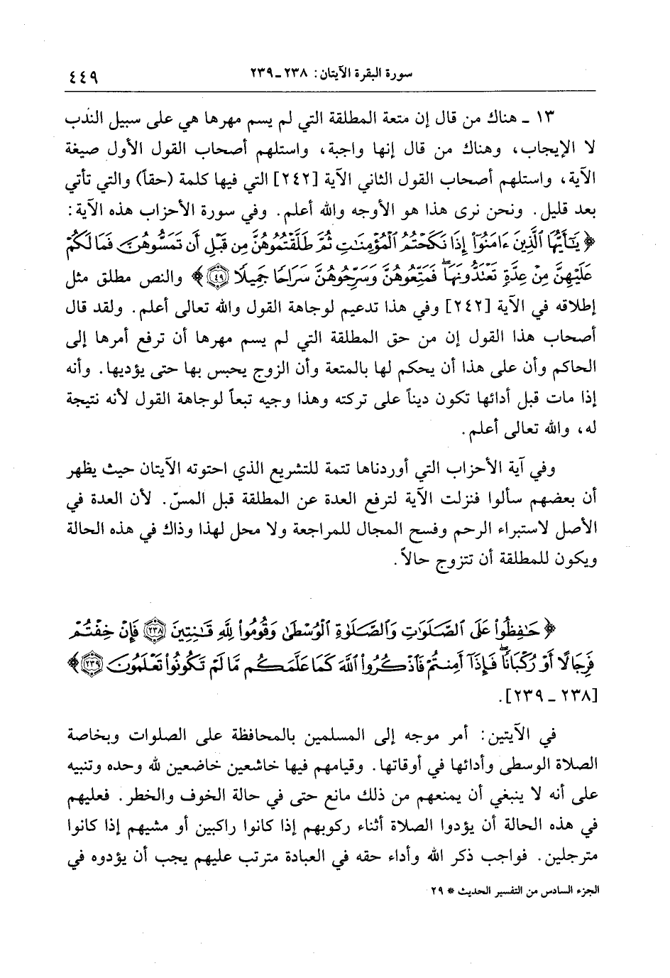 13- هناك من قال إن متعة المطلقة التي لم يسم مهرها هي على سبيل الندب لا الإيجاب، وهناك من قال إنها واجبة، واستلهم أصحاب القول الأول صيغة الآية، واستلهم أصحاب القول الثاني الآية [242] التي فيها كلمة (حقا) والتي تأتي بعد قليل. ونحن نرى هذا هو الأوجه والله أعلم. وفي سورة الأحزاب هذه الآية: