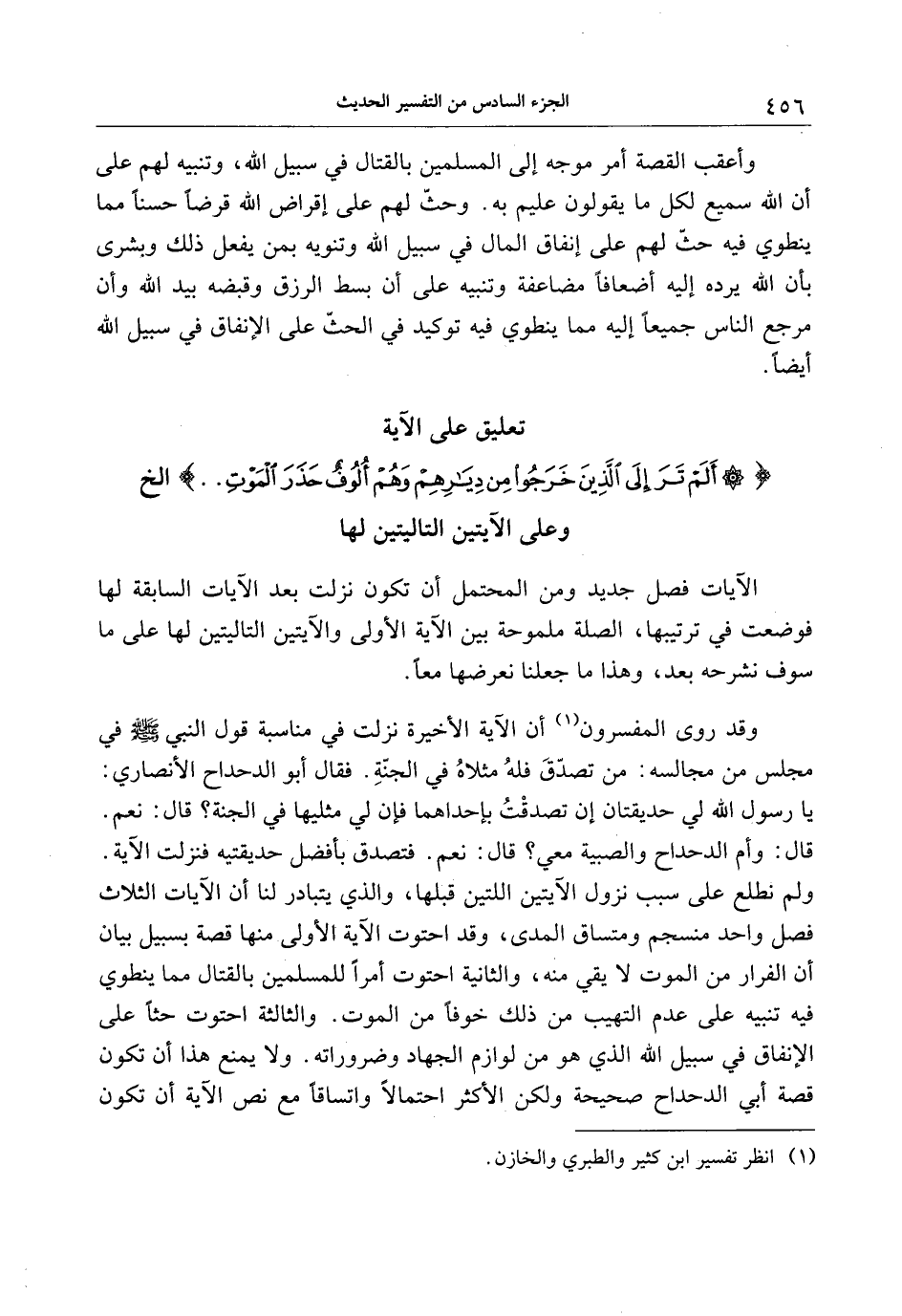 تعليق على الآية أَلَمْ تَرَ إِلَى الَّذِينَ خَرَجُوا مِنْ دِيارِهِمْ وَهُمْ أُلُوفٌ حَذَرَ الْمَوْتِ ... إلخ وعلى الآيتين التاليتين لها