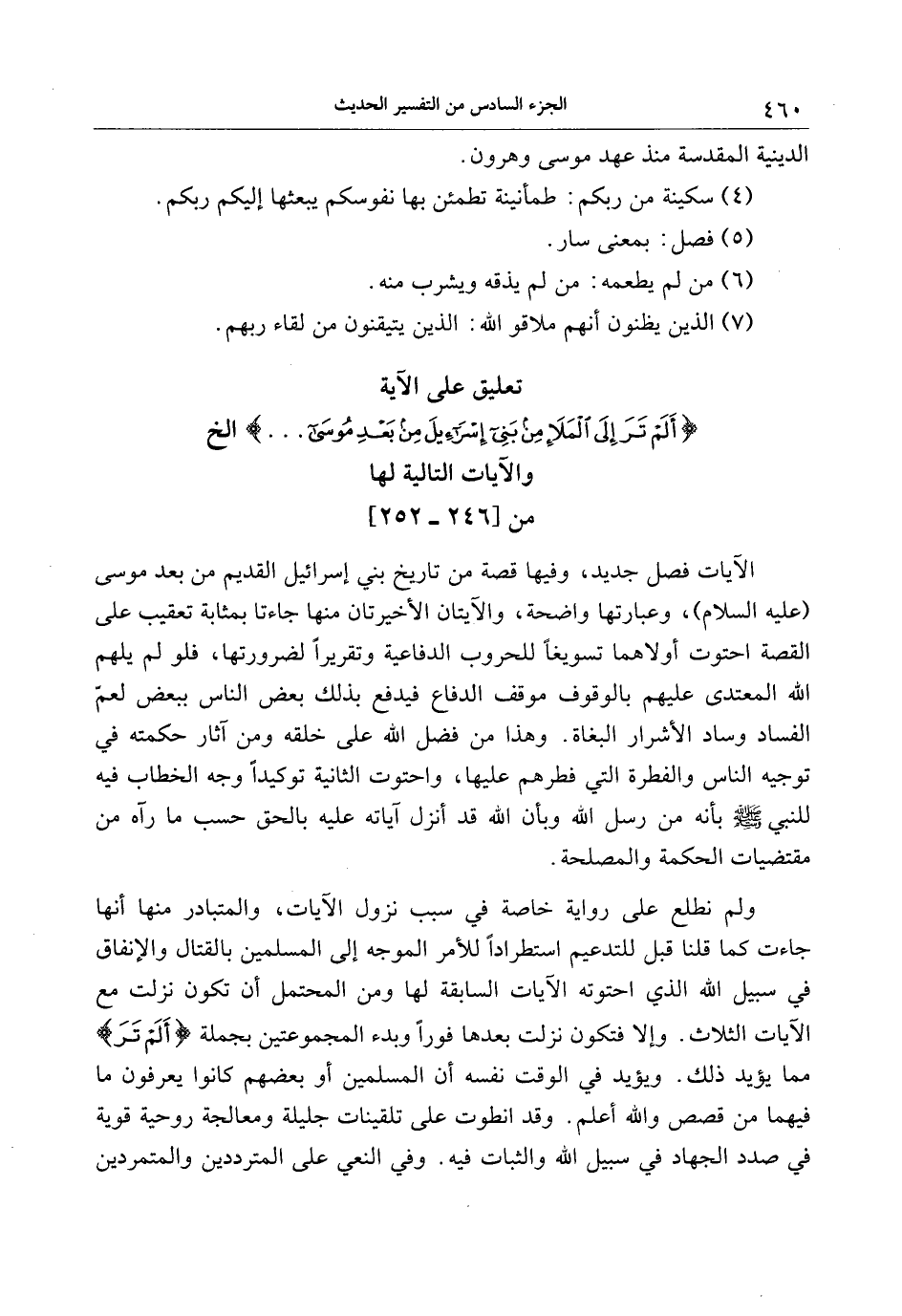 تعليق على الآية أَلَمْ تَرَ إِلَى الْمَلَإِ مِنْ بَنِي إِسْرائِيلَ مِنْ بَعْدِ مُوسى ... إلخ والآيات التالية لها من [246- 252]