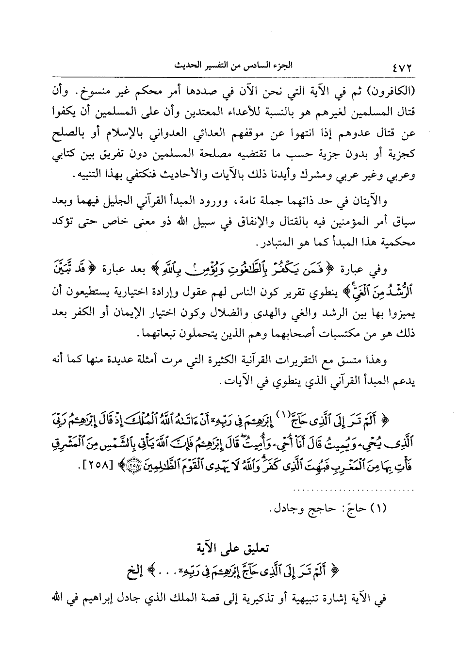 تعليق على الآية أَلَمْ تَرَ إِلَى الَّذِي حَاجَّ إِبْراهِيمَ فِي رَبِّهِ ... إلخ