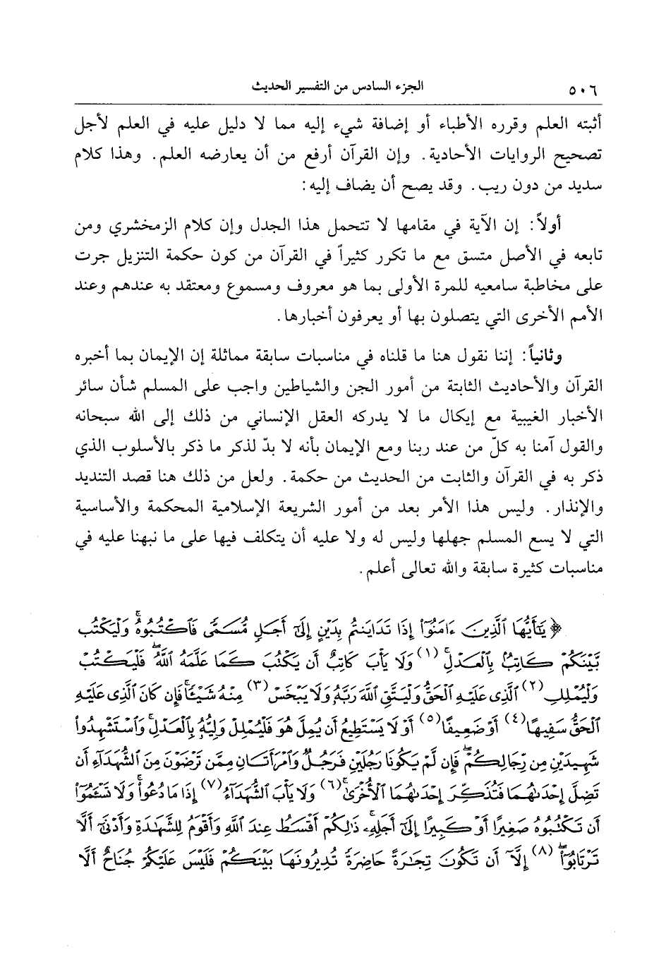 وثانيا: إننا نقول هنا ما قلناه في مناسبات سابقة مماثلة إن الإيمان بما أخبره القرآن والأحاديث الثابتة من أمور الجن والشياطين واجب على المسلم شأن سائر الأخبار الغيبية مع إيكال ما لا يدركه العقل الإنساني من ذلك إلى الله سبحانه والقول آمنا به كلّ من عند ربنا ومع الإيمان بأنه لا بدّ لذكر ما ذكر بالأسلوب الذي ذكر به في القرآن والثابت من الحديث من حكمة. ولعل من ذلك هنا قصد التنديد والإنذار. وليس هذا الأمر بعد من أمور الشريعة الإسلامية المحكمة والأساسية التي لا يسع المسلم جهلها وليس له ولا عليه أن يتكلف فيها على ما نبهنا عليه في مناسبات كثيرة سابقة والله تعالى أعلم.
