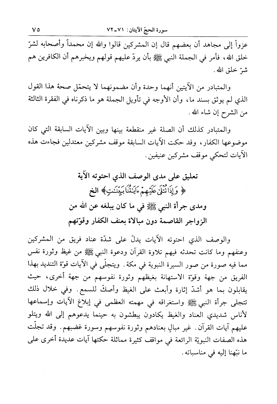 تعليق على مدى الوصف الذي احتوته الآية وَإِذا تُتْلى عَلَيْهِمْ آياتُنا بَيِّناتٍ إلخ ومدى جرأة النبي صلّى الله عليه وسلّم في ما كان يبلغه عن الله من الزواجر القاصمة دون مبالاة بعنف الكفار وقوّتهم