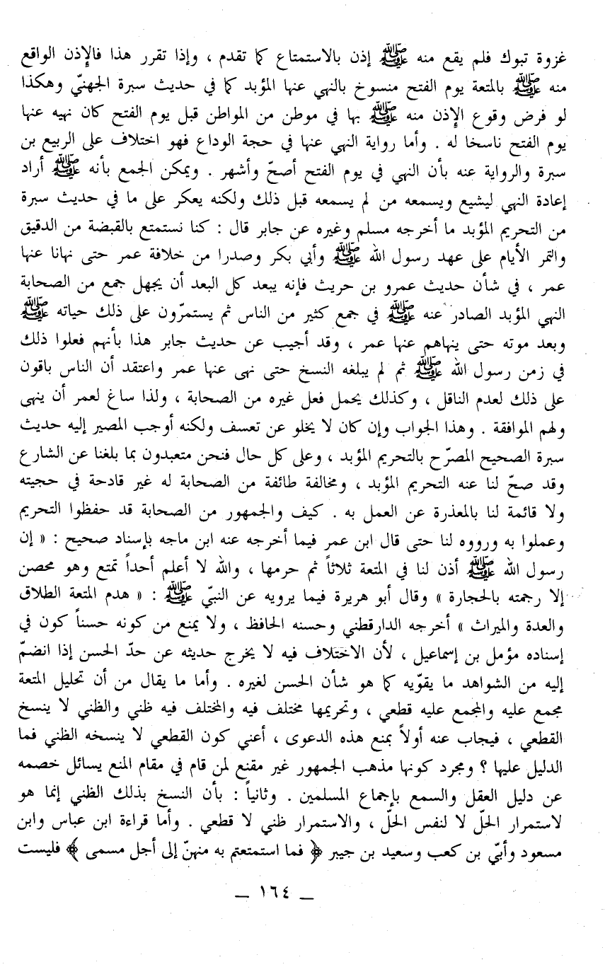وَهَذَا الْجَوَابُ وَإِنْ كَانَ لَا يَخْلُو عَنْ تَعَسُّفٍ وَلَكِنَّهُ أَوْجَبَ الْمَصِيرَ إلَيْهِ حَدِيثُ سَبْرَةَ الصَّحِيحُ الْمُصَرِّحُ بِالتَّحْرِيمِ الْمُؤَبَّدِ، وَعَلَى كُلِّ حَالٍ فَنَحْنُ مُتَعَبِّدُونَ بِمَا بَلَغَنَا عَنْ الشَّارِعِ وَقَدْ صَحَّ لَنَا عَنْهُ التَّحْرِيمُ الْمُؤَبَّدُ، وَمُخَالَفَةُ طَائِفَةٍ مِنْ الصَّحَابَةِ لَهُ غَيْرُ قَادِحَةٍ فِي حُجِّيَّتِهِ وَلَا قَائِمَةٍ لَنَا بِالْمَعْذِرَةِ عَنْ الْعَمَلِ بِهِ كَيْفَ وَالْجُمْهُورُ مِنْ الصَّحَابَةِ قَدْ حَفِظُوا التَّحْرِيمَ وَعَمِلُوا بِهِ وَرَوَوْهُ لَنَا حَتَّى قَالَ ابْنُ عُمَرَ فِيمَا أَخْرَجَهُ عَنْهُ ابْنُ مَاجَهْ بِإِسْنَادٍ صَحِيحٍ: «إنَّ رَسُولَ اللَّهِ - صَلَّى اللَّهُ عَلَيْهِ وَسَلَّمَ - أَذِنَ لَنَا فِي الْمُتْعَةِ ثَلَاثًا ثُمَّ حَرَّمَهَا، وَاَللَّهِ لَا أَعْلَمُ أَحَدًا تَمَتَّعَ وَهُوَ مُحْصَنٌ إلَّا رَجَمْتُهُ بِالْحِجَارَةِ» .