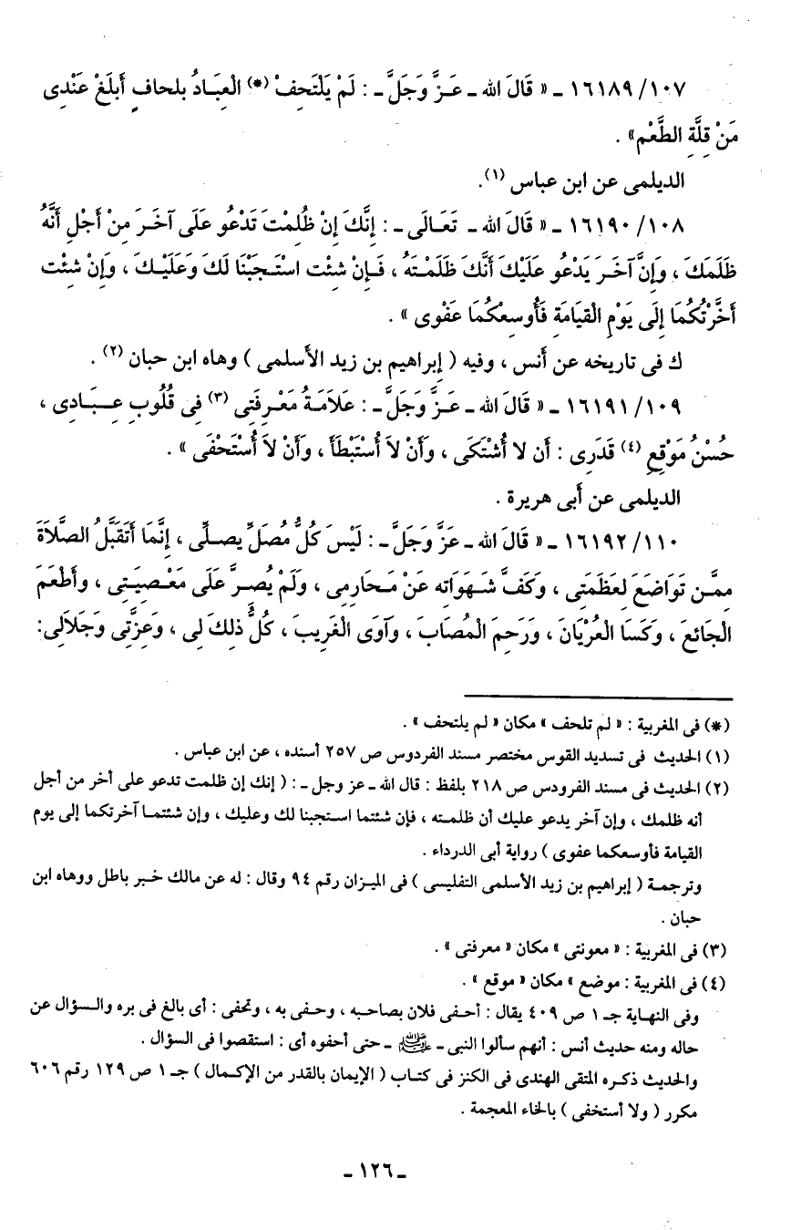 107/ 16189 - "قَال الله -عَزَّ وَجَلَّ-: لَمْ يَلتَحِفْ (*) الْعِبَاد بلحافٍ أَبلَغْ عَنْدِي مَنْ قِلَّةِ الطَّعْم".