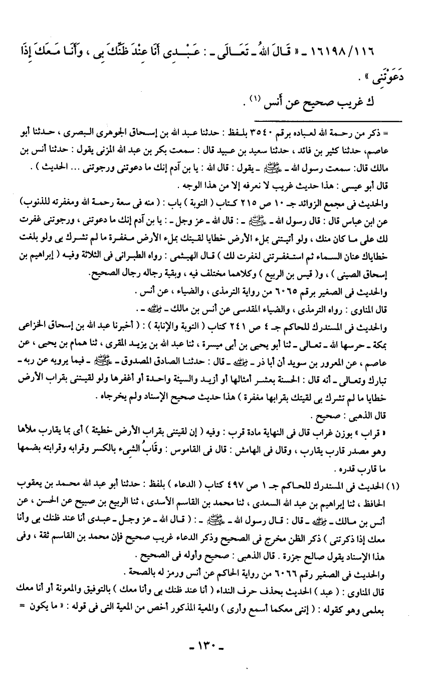 116/ 16198 - "قَال اللهُ -تَعَالى-: عَبْدِي أَنَا عِندَ ظنِّكَ بِي, وَأنَا مَعَكَ إِذَا دَعَوْتَنِي".