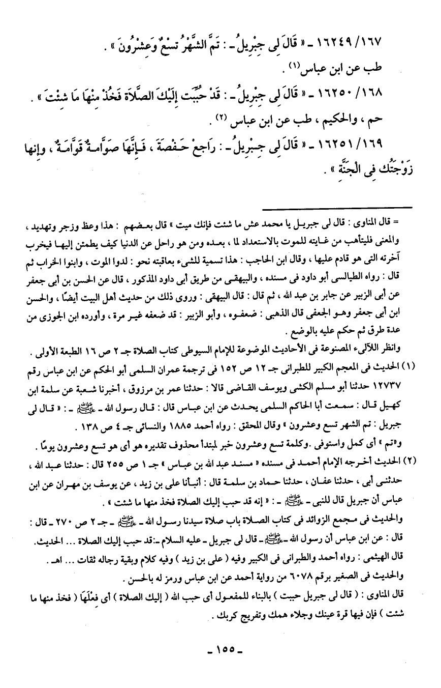 168/ 16250 - "قَال لِي جِبْرِيلُ-: قَدْ حببت إِلَيكَ الصلاة فَخذ منْهَا مَا شئْتَ".