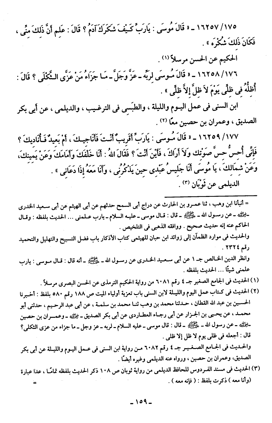 175/ 16257 - "قَال مُوسَى: يَا رَبِّ كَيف شكَرَكَ آدَمُ؟ قَال: عَلم أن ذَلكَ منِّي, فكَانَ ذَلِكَ شُكْرَه".