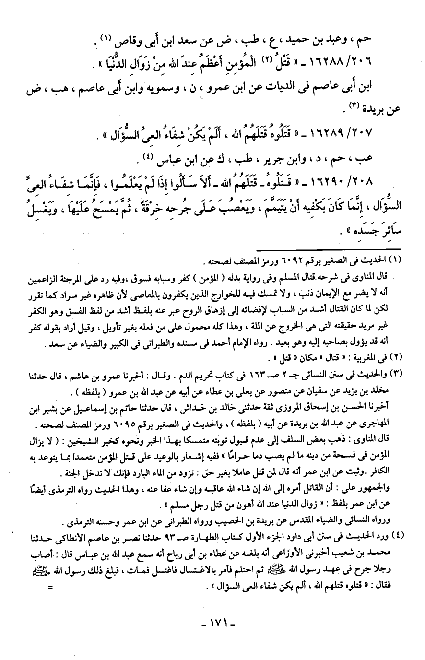 206/ 16288 - "قَتْلُ (¬2) المُؤمِنِ أعظَمُ عِندَ الله مِن زَوَالِ الدنيَا (1).