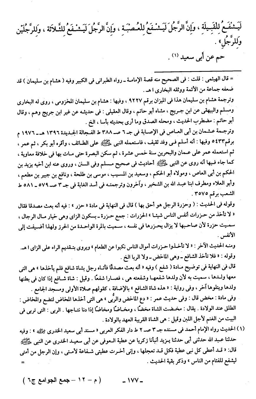 (¬1) الحديث رواه الإمام أحمد في مسنده ج 3 ص 2 ط دار الفكر العربي "مسند أبي سعيد الخدري": وفيه حدثنا عبد الله حدثني أبي حدثنا يزيد أنبأنا زكريا عن عطية العوفى عن أبي سعيد الخدري عن النبي - صلى الله عليه وسلم - قال: "قد أعطى كل نبي عطية فكل قد تعجلها، وإني أخرت عطيتى شفاعة لأمتى، وإن الرجل من أمتى ليشفع للفئام من الناس" وذكر بقية الحديث. =