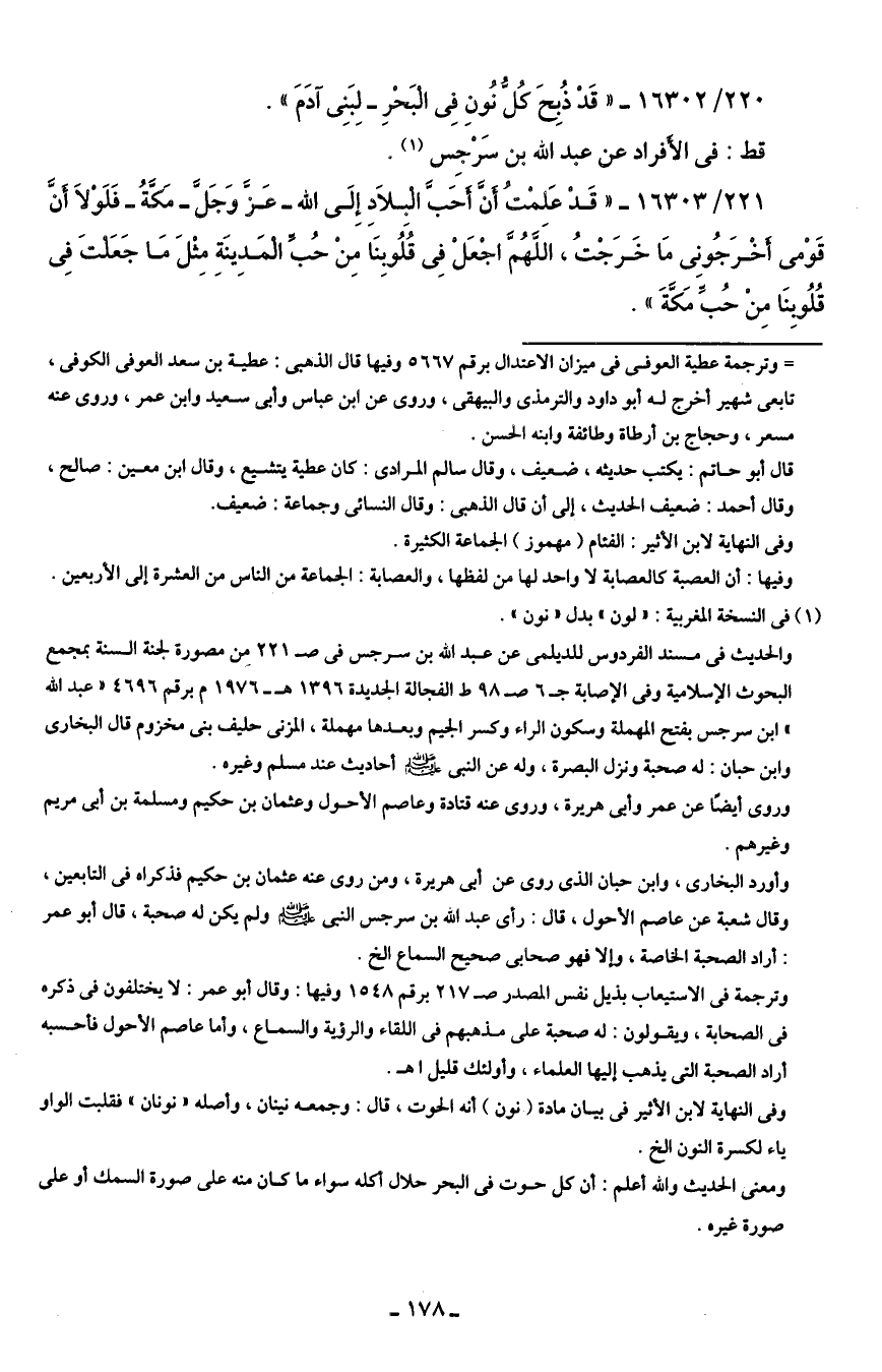 والحديث في مسند الفردوس للديلمي عن عبد الله بن سرجس في ص 221 من مصورة لجنة السنة بمجمع البحوث الإسلامية وفي الإصابة ج 6 ص 98 ط الفجالة الجديدة 1396 هـ - 1976 م برقم "عبد الله" ابن سرجس بفتح المهملة وسكون الراء وكسر الجيم وبعدها مهملة، المزني حليف بني مخزوم قال البخاري وابن حبان: له صحبة ونزل البصرة، وله عن النبي - صلى الله عليه وسلم - أحاديث عند مسلم وغيره.