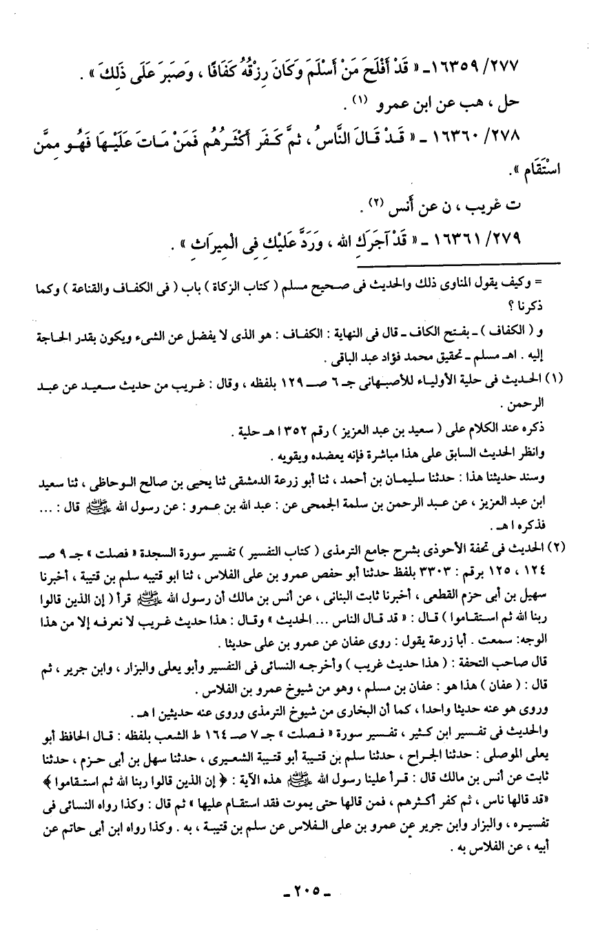 = وكيف يقول المناوى ذلك والحديث في صحيح مسلم (كتاب الزكاة) باب (في الكفاف والقناعة) وكما ذكرنا؟