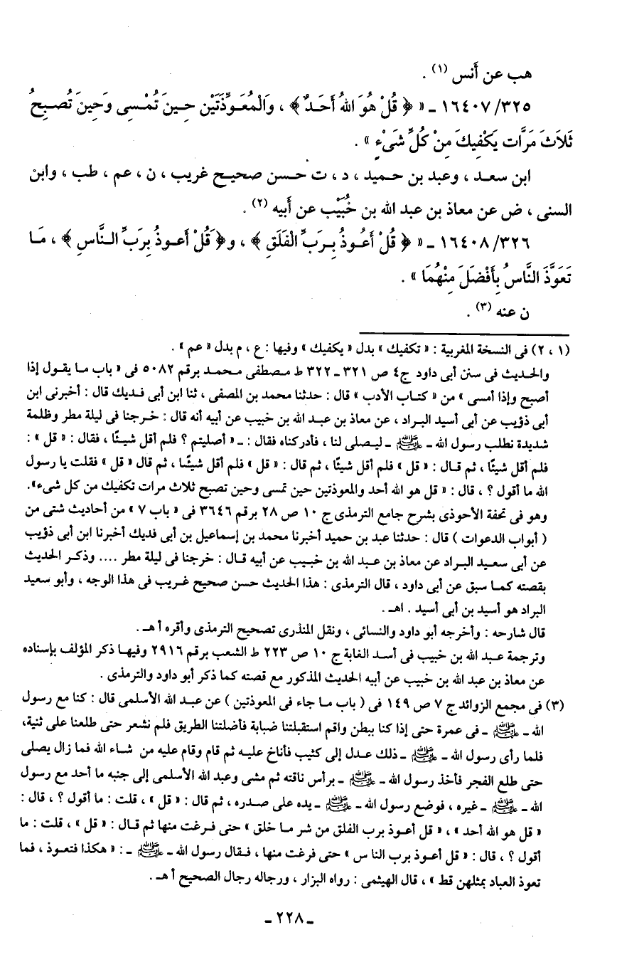 325/ 16407 - {قُلْ هُوَ اللَّهُ أَحَدٌ}، وَالْمُعَوِّذَتَين حِينَ تُمْسِى وَحِينَ تُصبِحُ ثَلاثَ مَرَّات يَكْفِيكَ مِنْ كُلِّ شَيْءٍ".