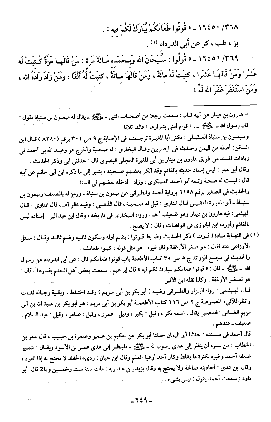 368/ 16450 - "قُوتُوا طَعَامَكمْ يُبَارَكْ لَكُمْ فِيهِ".