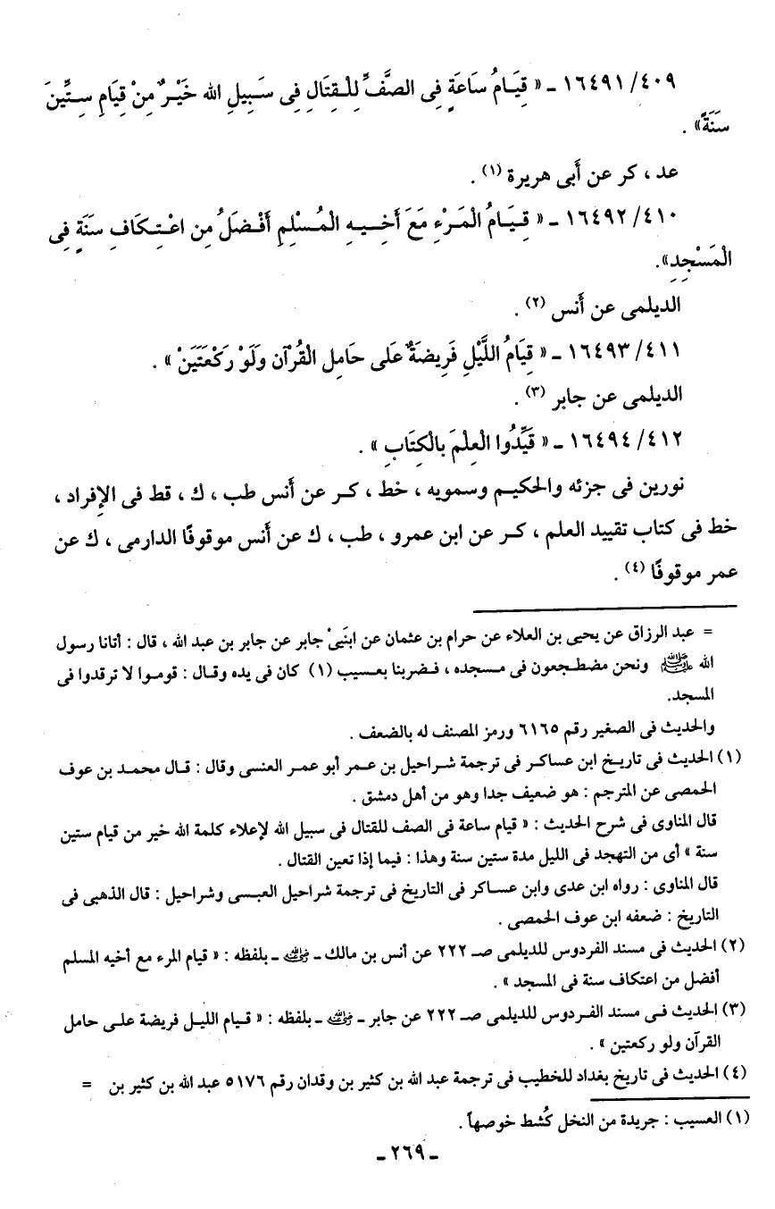 409/ 16491 - "قِيَامُ سَاعَةٍ فِي الصَّفِّ لِلْقِتَالِ فِي سَبِيلِ الله خَيرٌ مِنْ قِيَامِ سِتِّينَ سَنَةً".