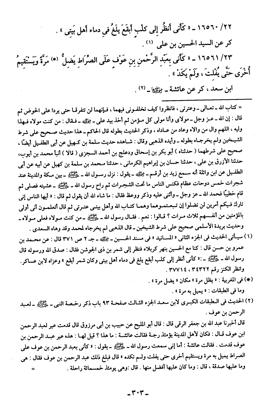 22/ 16560 - "كَأنى أنظُر إِلى كلْبٍ أبقَعَ يلَغُ في دماء أهل بَيتِى".