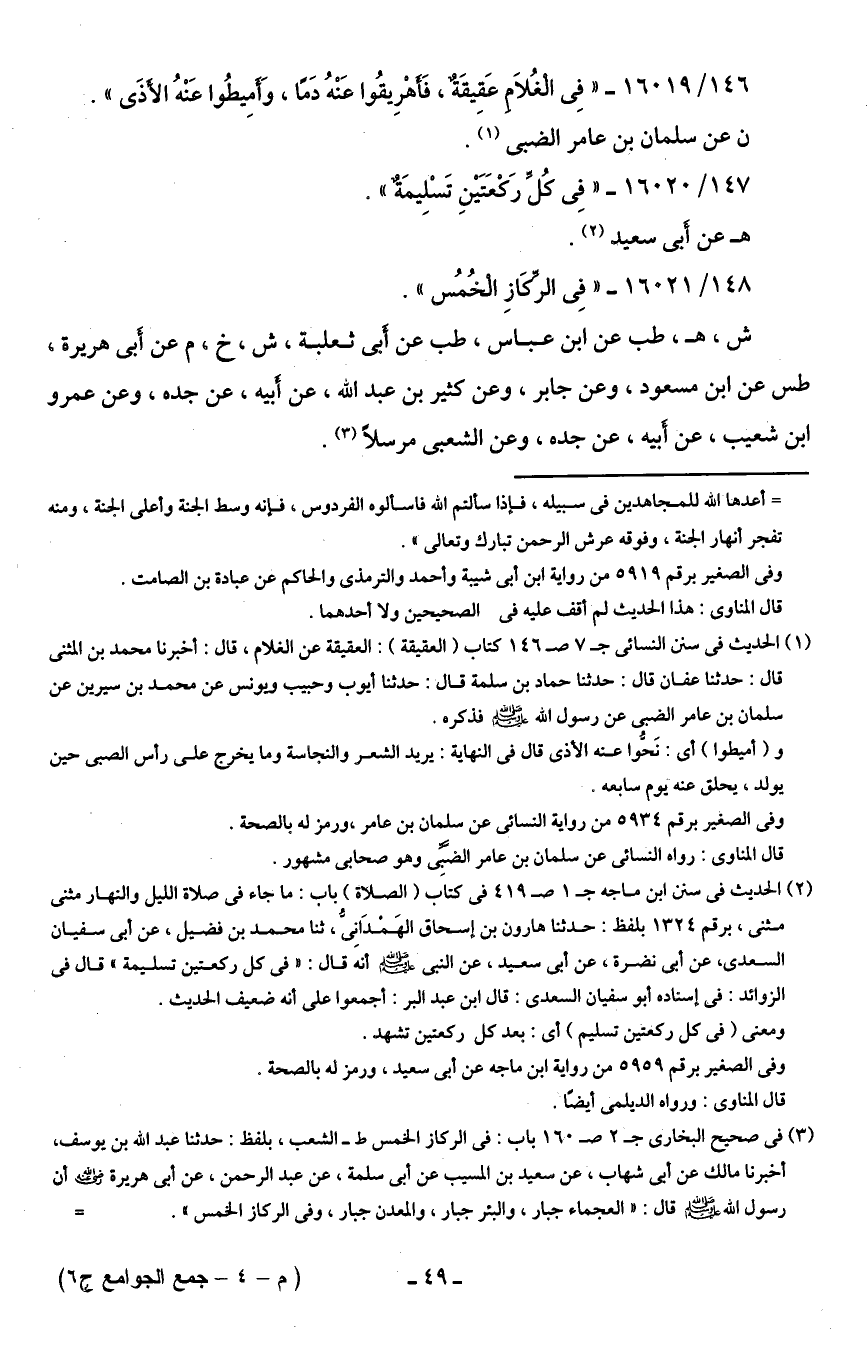 146/ 16019 - "في الْغُلامِ عَقيقَةٌ، فَأهْرِيقُوا عَنْهُ دَمًا، وَأَميطُوا عَنْهُ الأذَى".