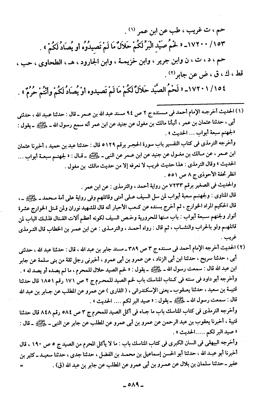 154/ 17201 - "لَحْمُ الصَّيد حَلالٌ لَكُمْ مَا لَمْ تَصيدوه أو يُصَادُ لَكُمْ وأنْتُم حُرُمٌ".