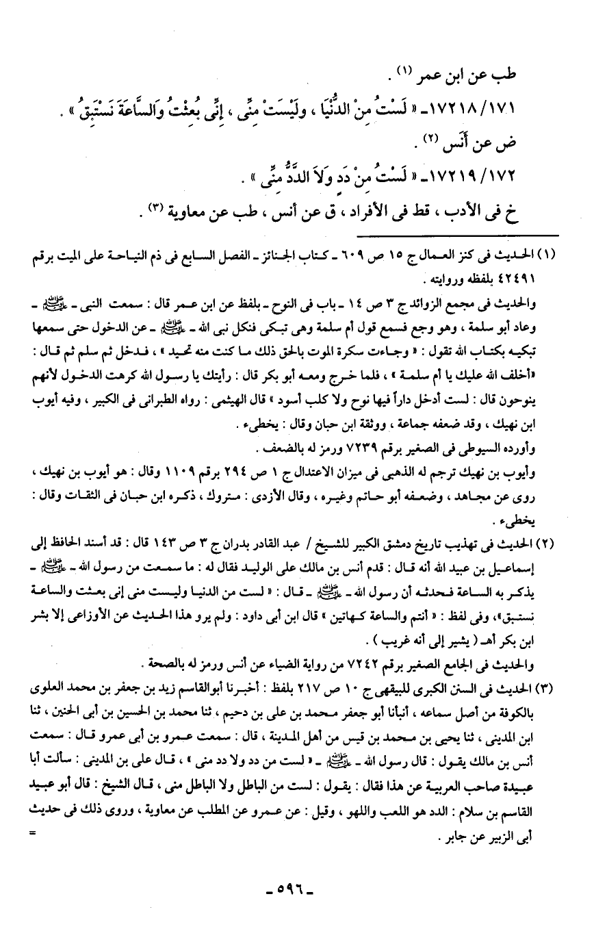 171/ 17218 - "لَسْتُ مِنْ الدُّنْيَا، ولَيسَتْ مِنِّي، إِنِّي بُعثتُ وَالسَّاعَةَ نَسْتَبِقُ".
