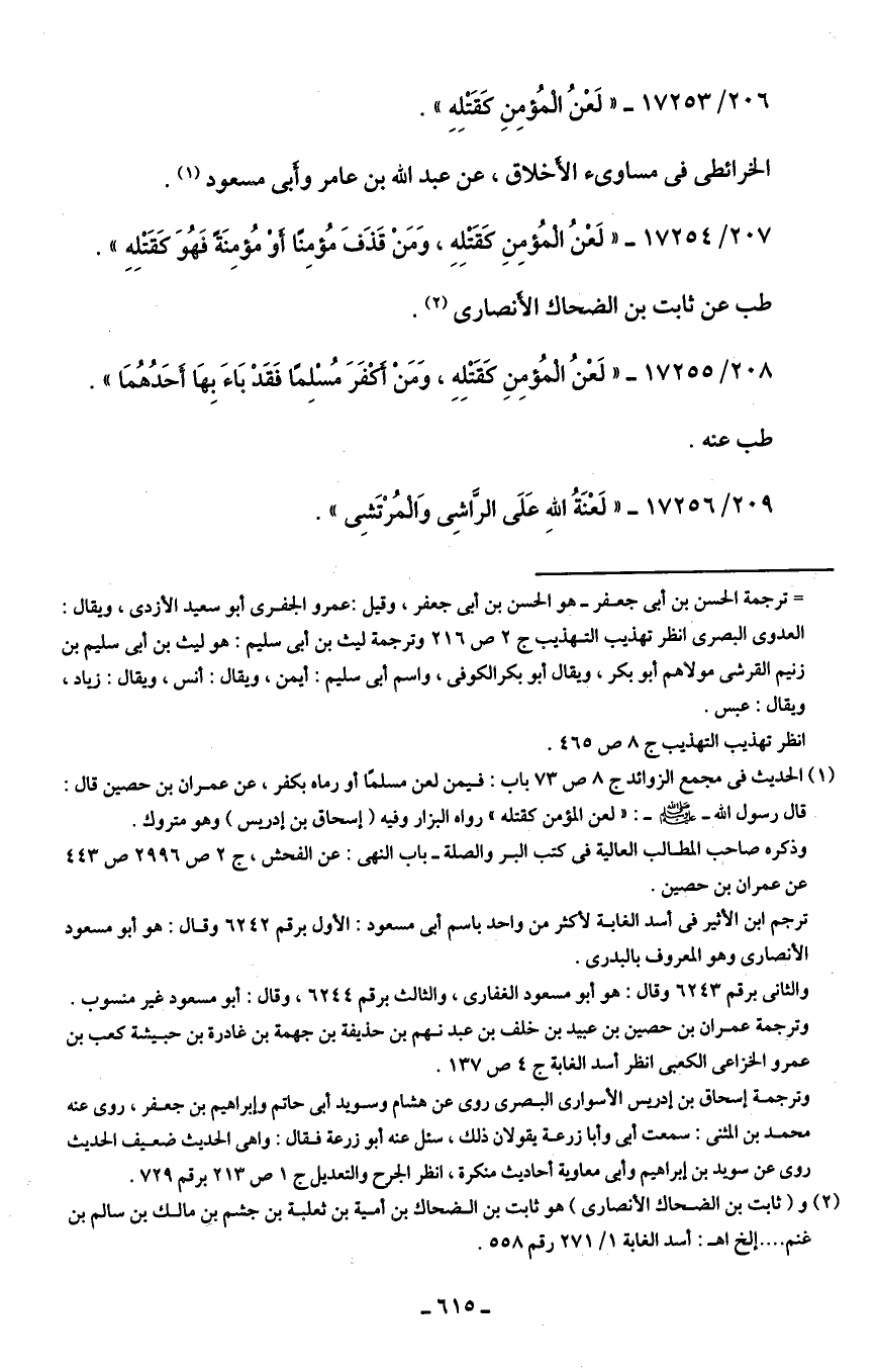 206/ 17253 - "لَعْنُ الْمُؤمِنِ كَقَتْلِهِ".