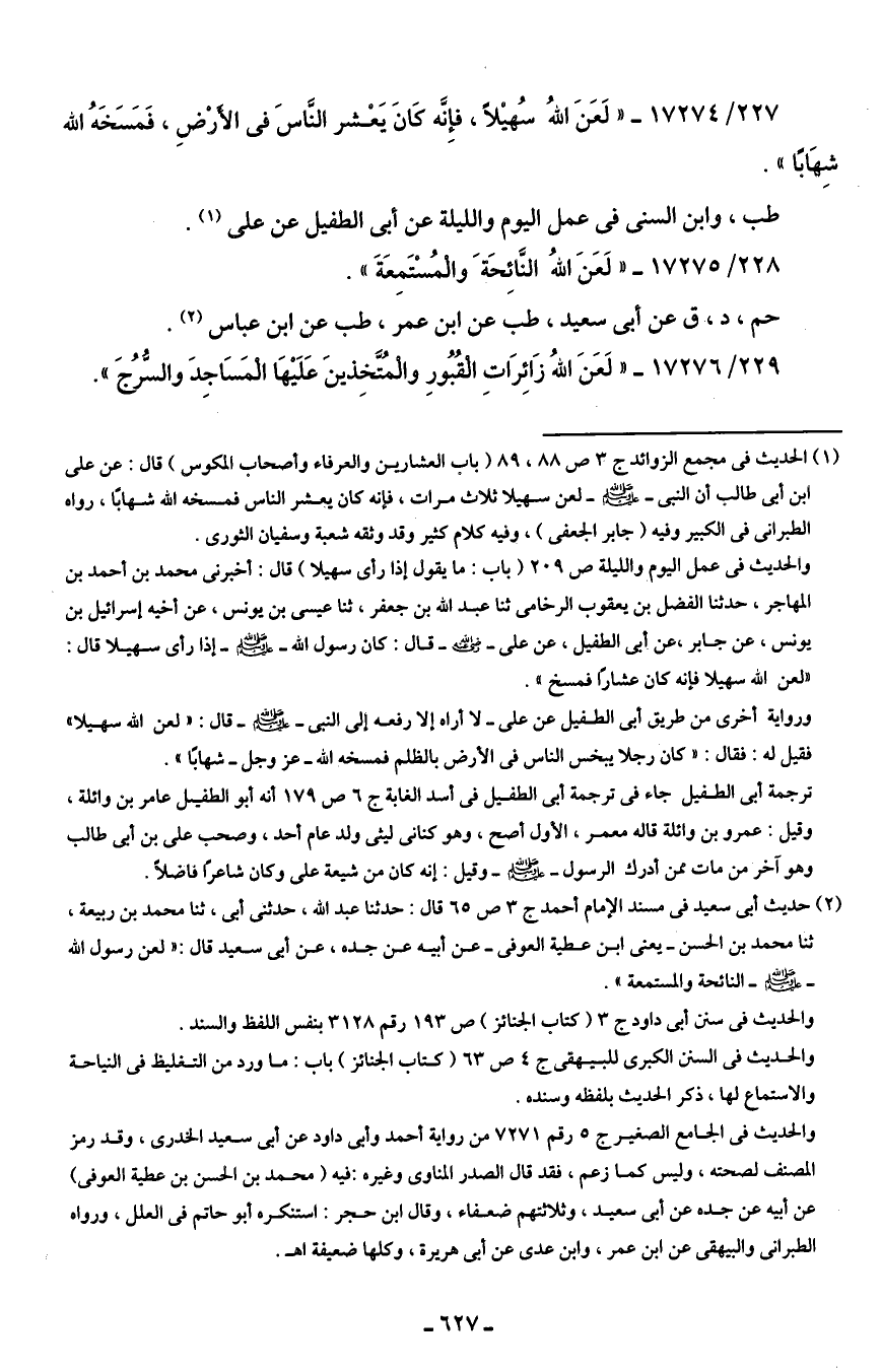 229/ 17276 - "لَعَنَ اللهُ زَائِرَاتِ الْقُبُورِ والْمُتَّخِذينَ عَلَيهَا الْمَسَاجِدَ والسُّرُجَ".