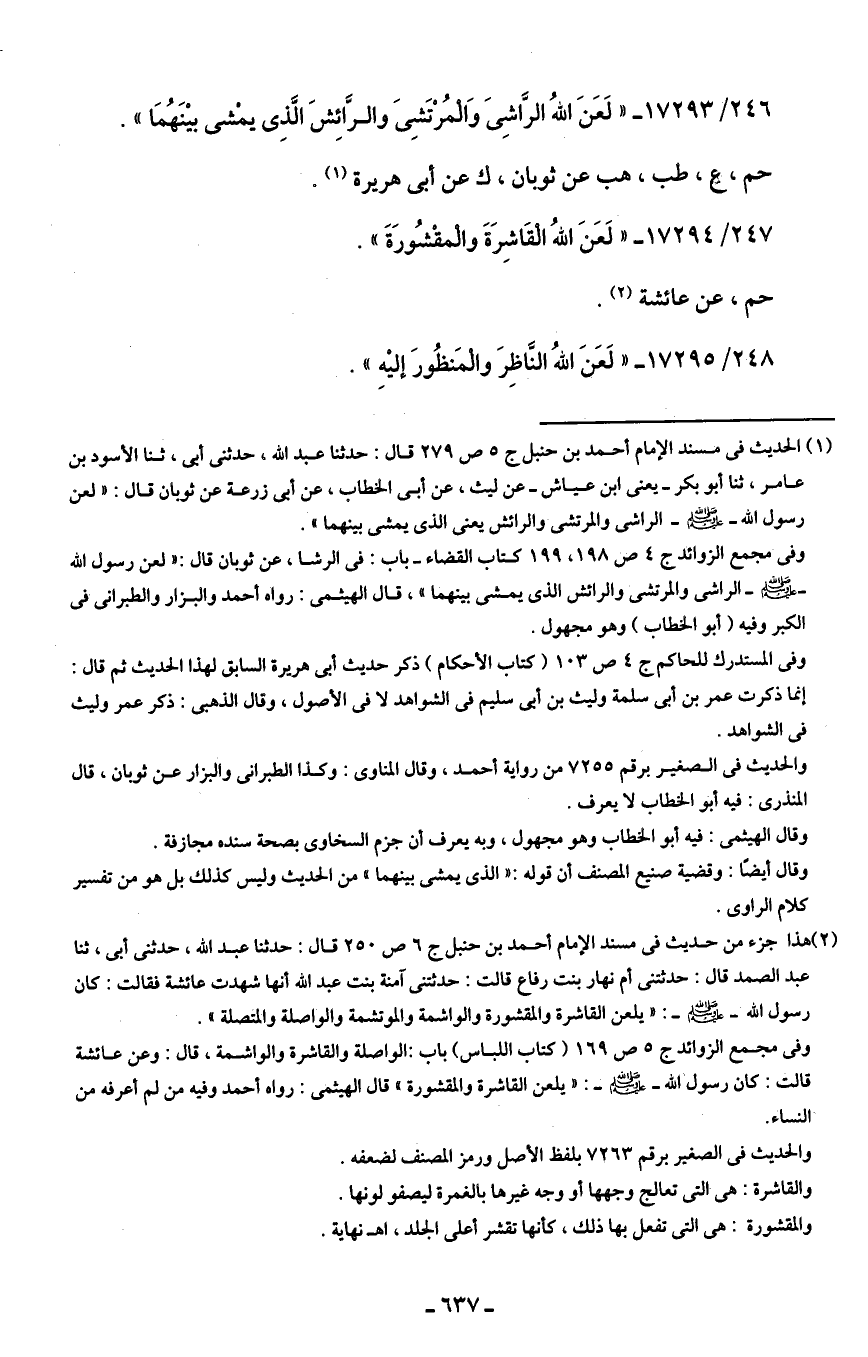 247/ 17294 - "لَعَنَ اللهُ الْقَاشِرَةَ والْمقْشُورَةَ".