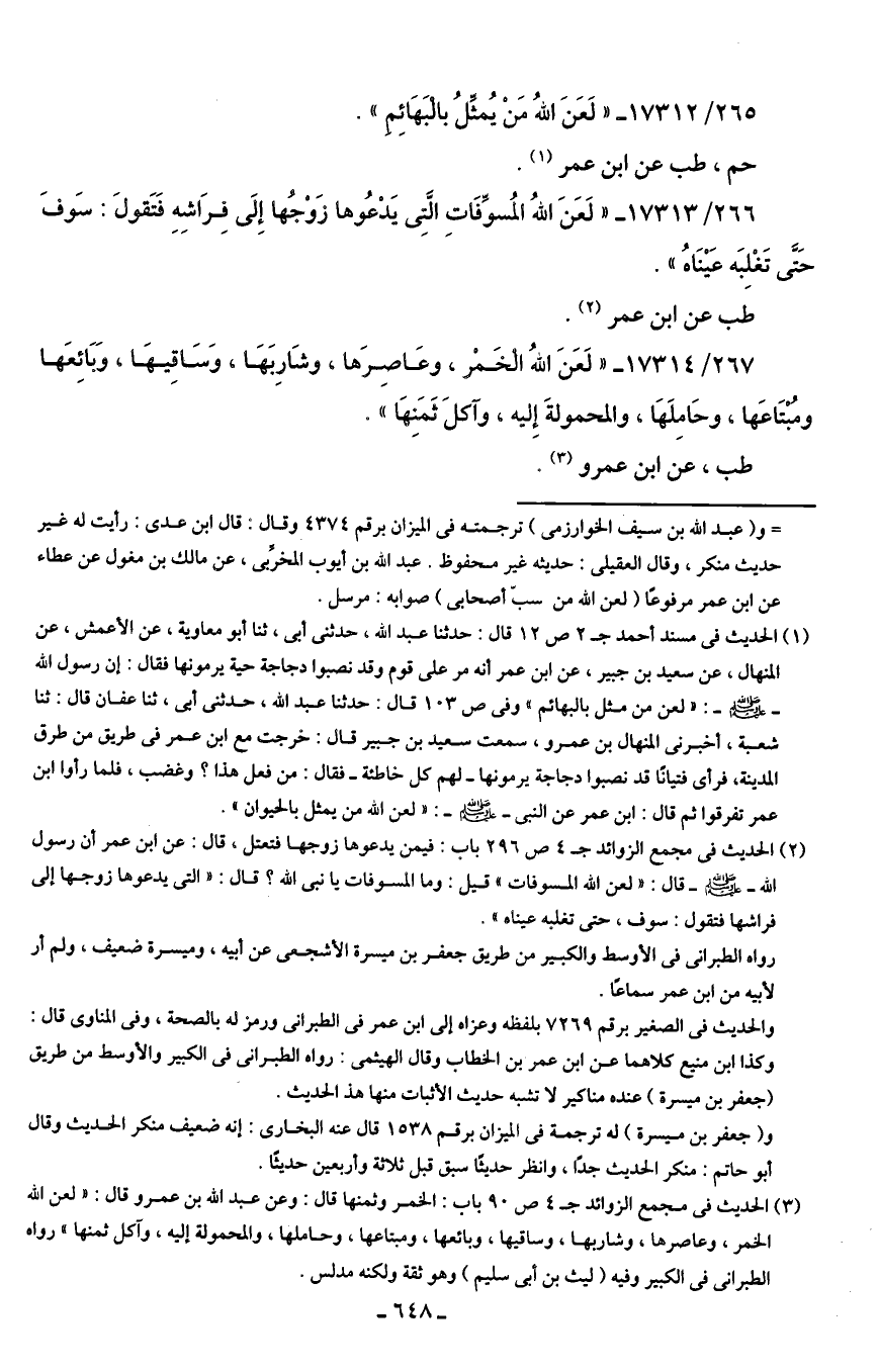 265/ 17312 - "لَعَنَ اللهُ مَنْ يُمثِّلُ بالْبَهَائِم".