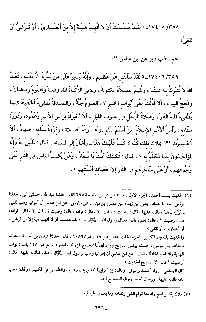 358/ 17405 - "لَقَدْ هَمَمْتُ أَنْ لَا أَتَّهِبَ هَبَةً إِلَّا مِنْ أَنْصَارىٍّ، أَوْ قُرَشىٍّ أَوْ ثَقَفِيٍّ".