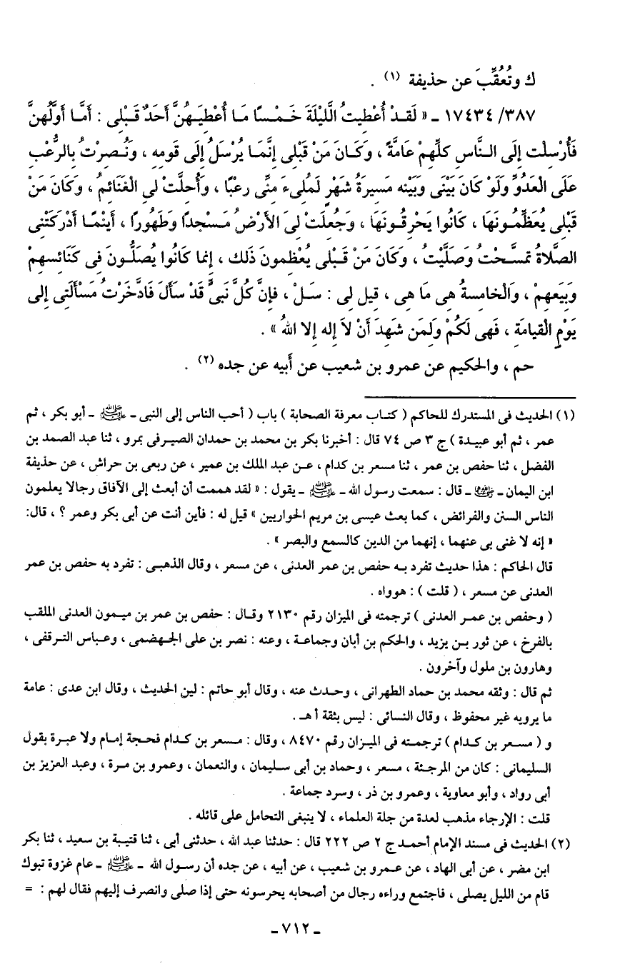 و(مسعر بن كدام) ترجمته في الميزان رقم 8470، وقال: مسعر بن كدام فحجة إمام ولا عبرة بقول السليمانى: كان من المرجئة، مسعر، وحماد بن أَبي سليمان، والنعمان، وعمرو بن مرة، وعبد العزيز بن أَبى رواد، وأَبو معاوية، وعمرو بن ذر، وسرد جماعة.