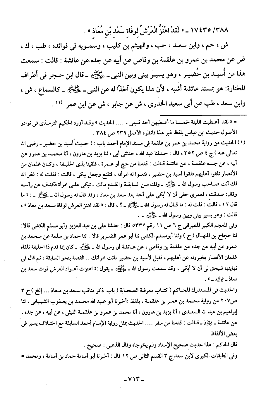 388/ 17435 - "لَقدْ اهتَزَّ الْعَرْشُ لِوفَاةِ سَعْدِ بْنِ مُعَاذٍ".