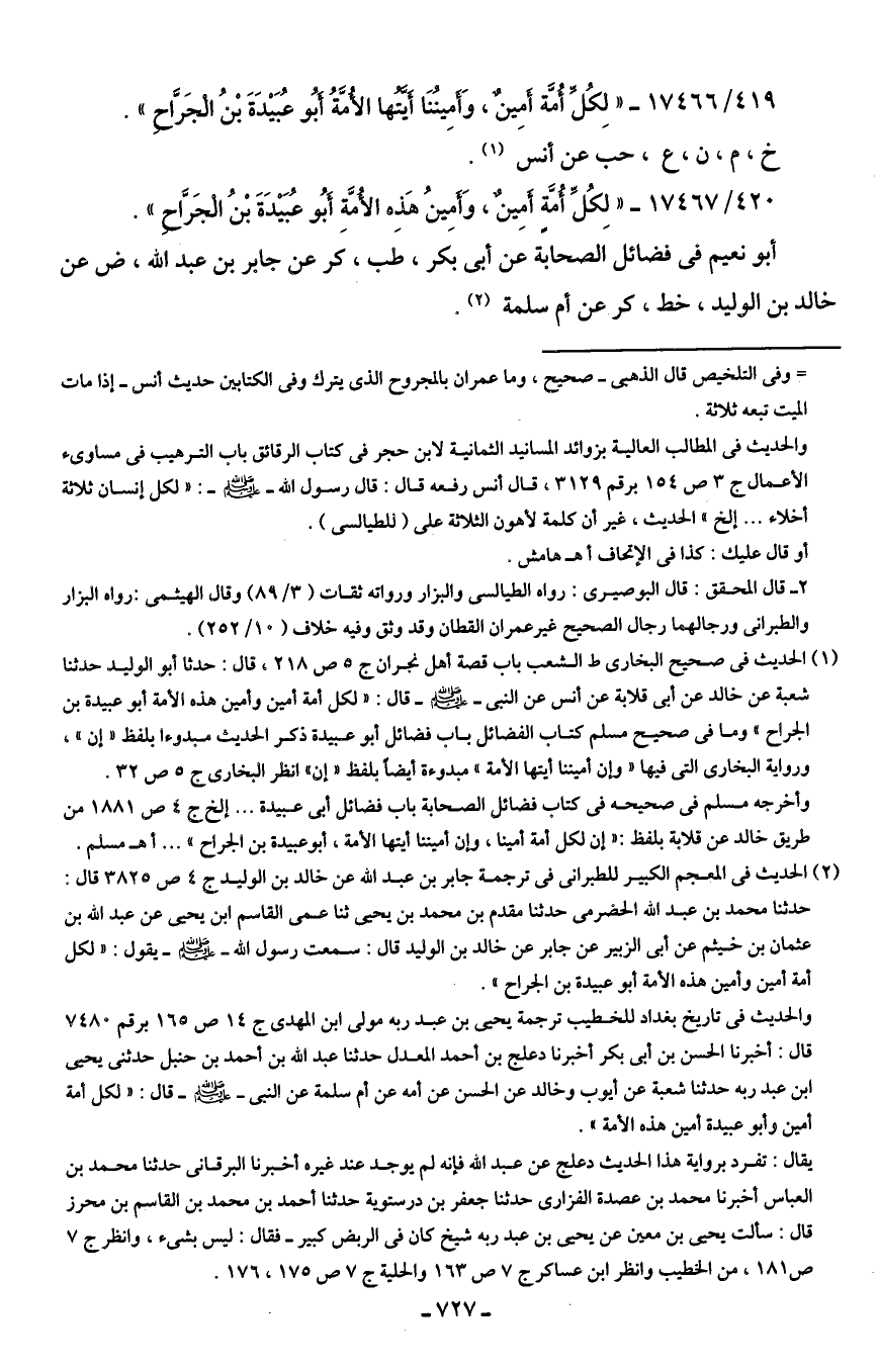 419/ 17466 - "لِكُل أُمَّة أمِينٌ، وَأمِينُنَا أيَّتُها الأُمَّةُ أَبُو عُبَيدَةَ بْنُ الْجَرَّاحِ".