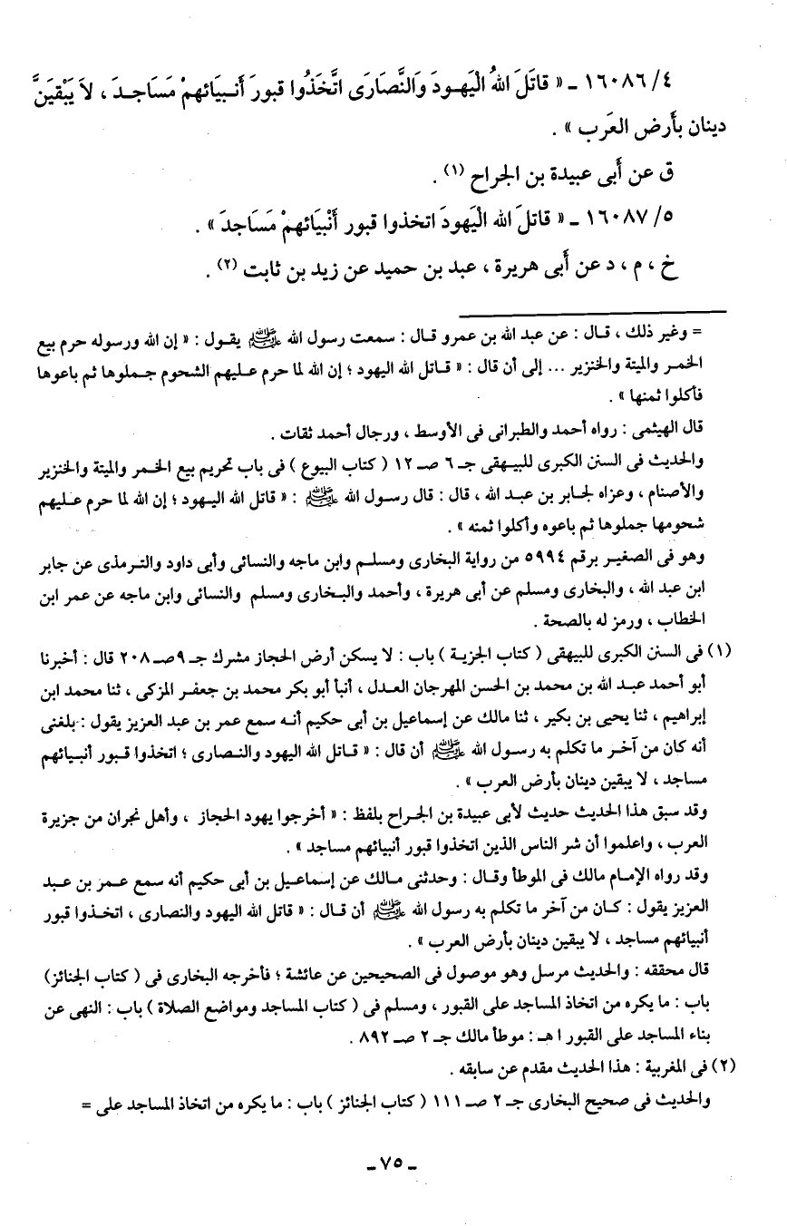 5/ 16087 - "قاتلَ الله الْيَهودَ اتخذوا قبور أَنْبيَائهمْ مَسَاجدَ".