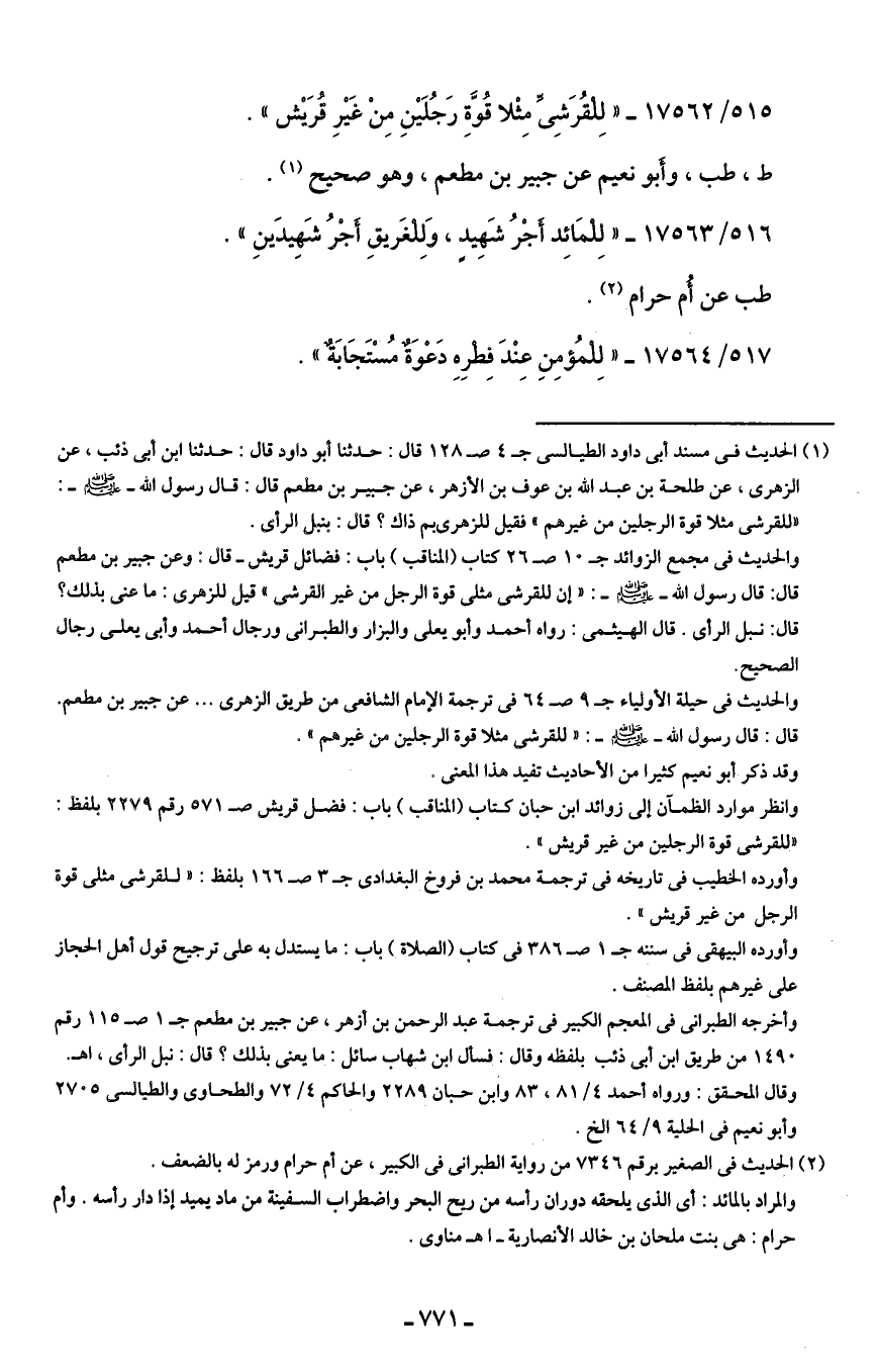 515/ 17562 - "لِلْقُرَشِيِّ مِثْلا قُوَّةِ رَجُلَينِ مِنْ غَيرِ قُرَيش".
