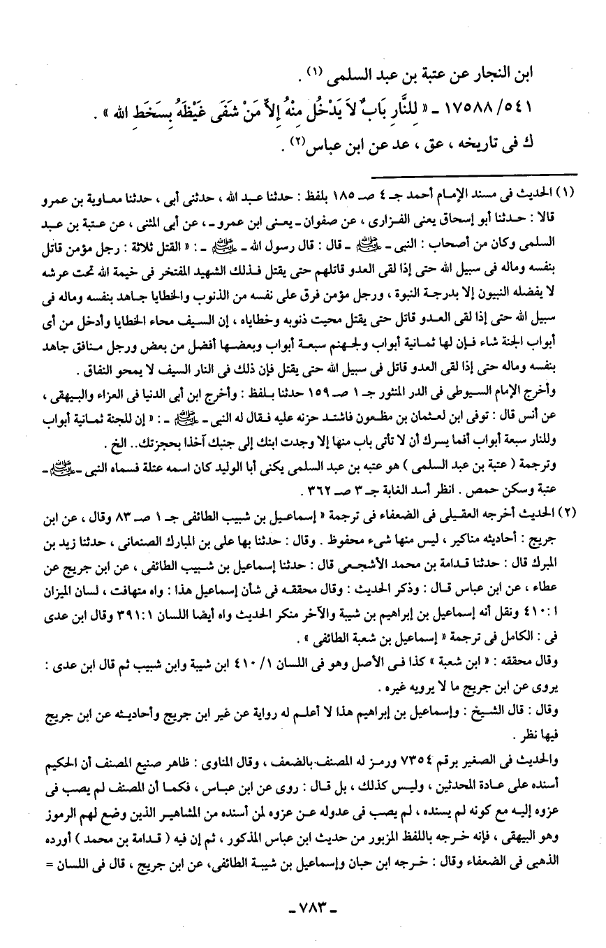وترجمة (عتبة بن عبد السلمى) هو عتبه بن عبد السلمى يكنى أبا الوليد كان اسمه عتلة فسماه النبي - صلى الله عليه وسلم - عتبة وسكن حمص. انظر أسد الغابة جـ 3 صـ 362.